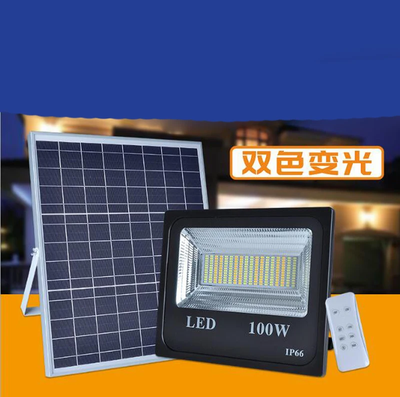 Product Name: 4 Pc/lote 100w Luz De Inundação Solar Dupla Cor à Prova Dip65 Ôgua Ip65 Spotlight Solar Lâmpada Para Decoração Do Jardim Controle Remoto